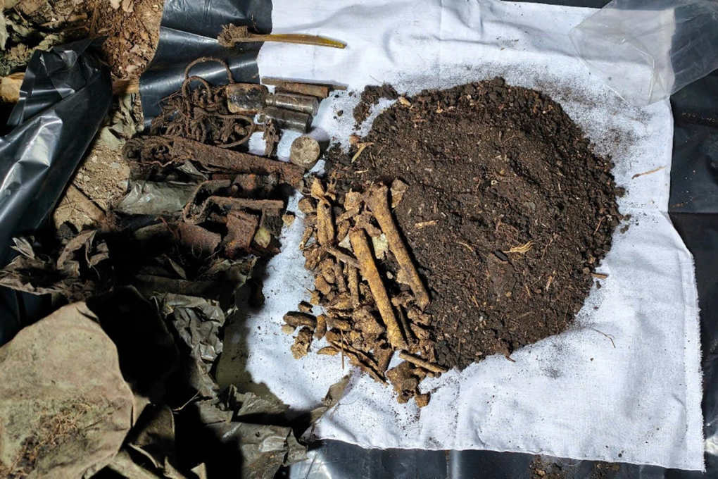 *Hài cốt liệt sĩ cùng nhiều di vật được tìm thấy trong đợt quy tập tháng 4. Ảnh: Kim Thi