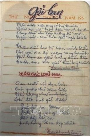 *Một trong những trang của cuốn nhật ký của liệt sĩ Võ Văn Công. Ảnh: TTXVN
