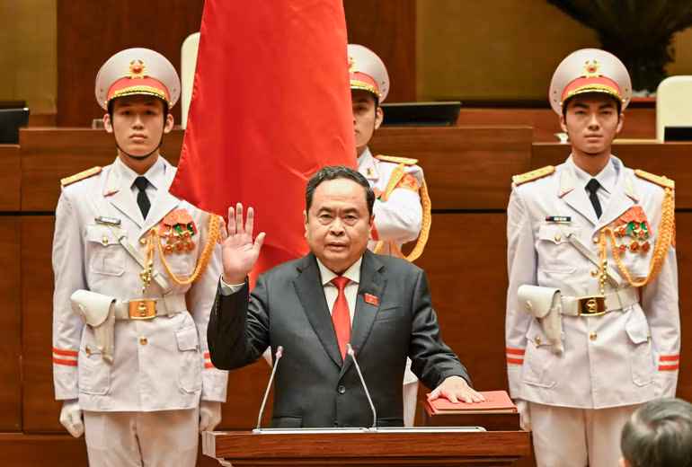 Đồng chí Trần Thanh Mẫn tuyên thệ nhậm chức Chủ tịch Quốc hội khoá XVI. Ảnh: DUY LINH