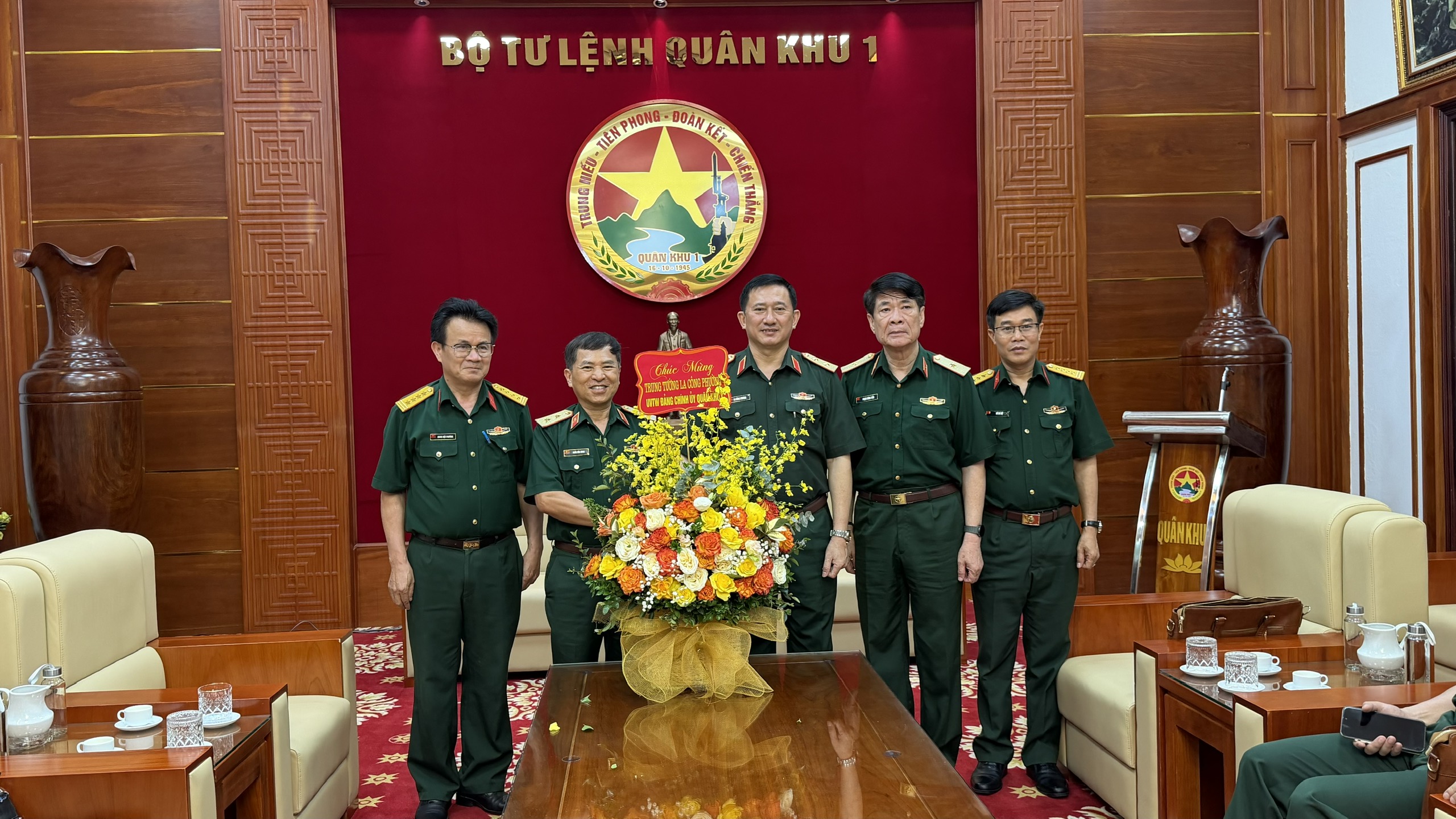* Trung tướng Trần Tấn Hùng, Phó chủ tịch Thường trực Hội tặng hoa, chúc mùng Trung tướng La Công Phương, Uỷ viên Trung ương Đảng, Chính ủy Quân khu I.