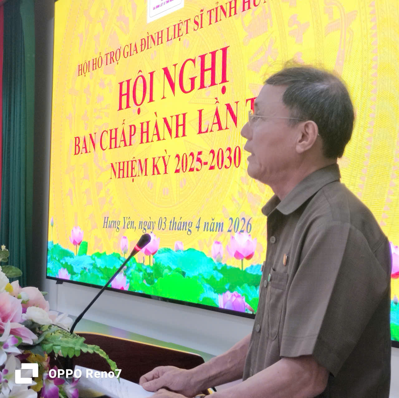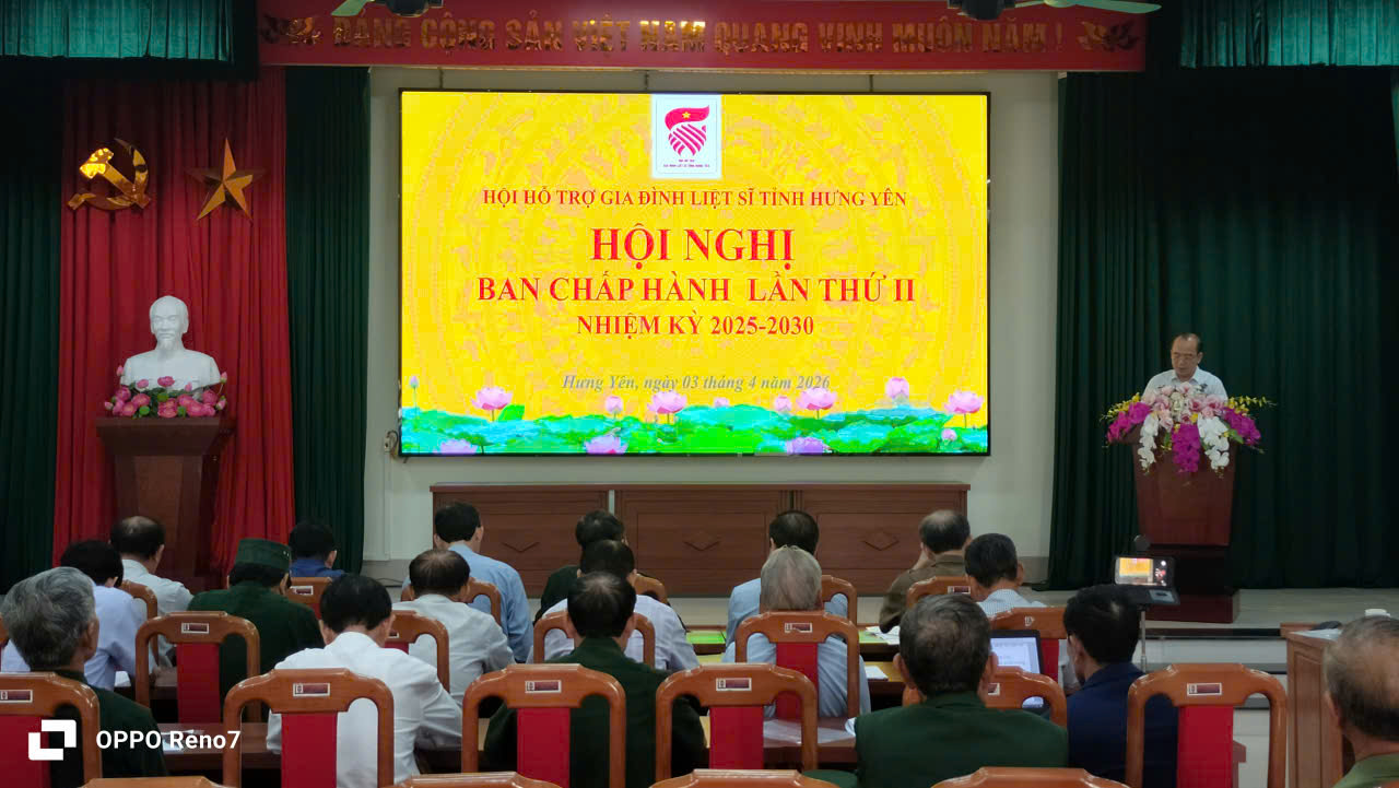 Ngày 3/4/2026, tại phường Phố Hiến, tỉnh Hưng Yên, Hội Hỗ trợ gia đình liệt sĩ (Hội HTGĐLS) tỉnh Hưng Yên đã tổ chức Hội nghị Ban Chấp hành lần thứ hai, nhiệm kỳ 2025-2030 dưới sự chủ trì của ông Đoàn Văn Hòa, Phó chủ tịch Thường trực, phục trách Hội HTGĐLS tỉnh Hưng Yên.