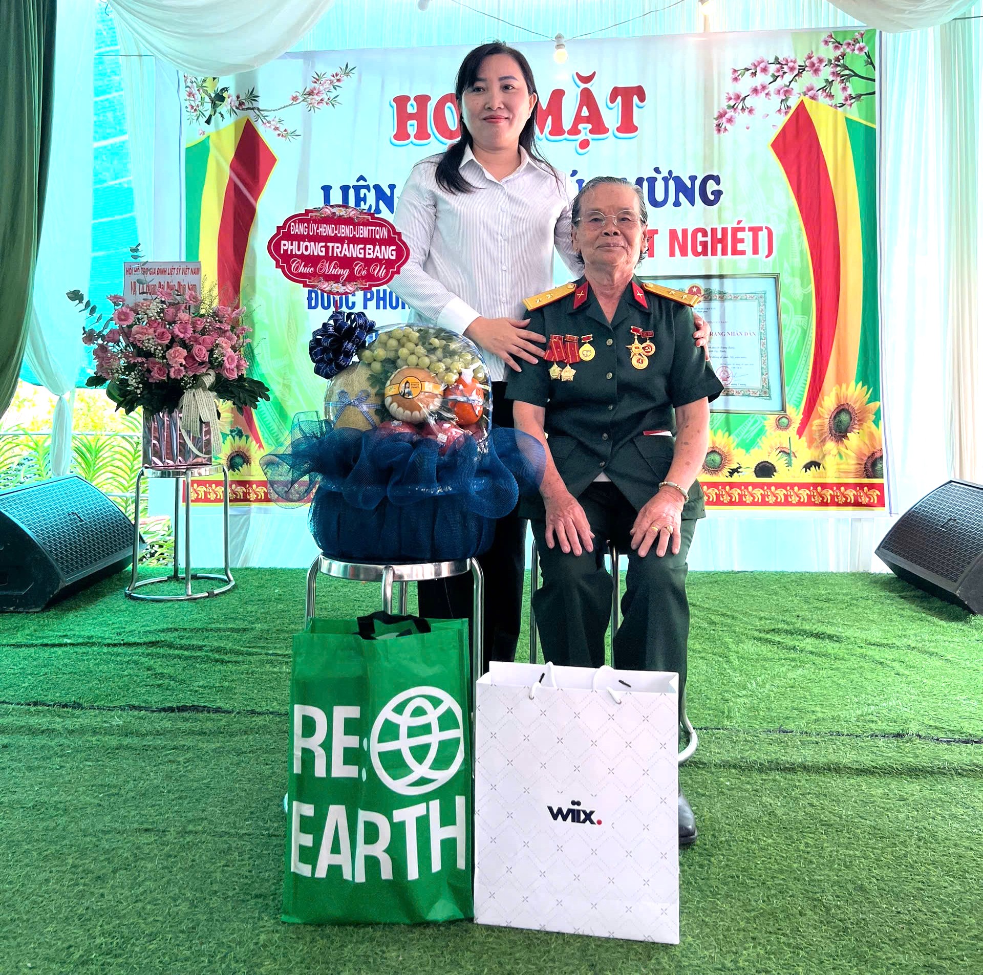 *Đại diện phường Trảng Bàng tặng quà chúc mừng bà Phan Thị Út